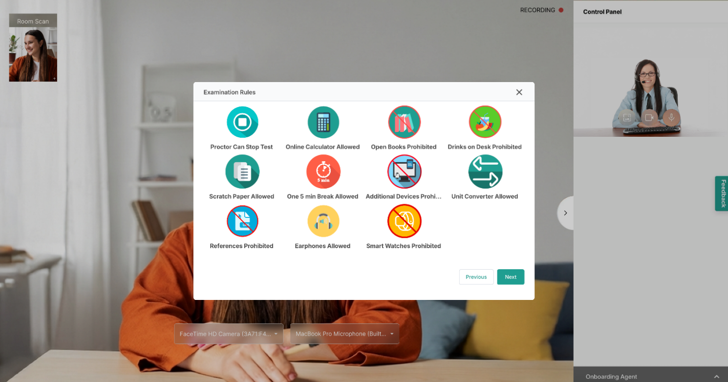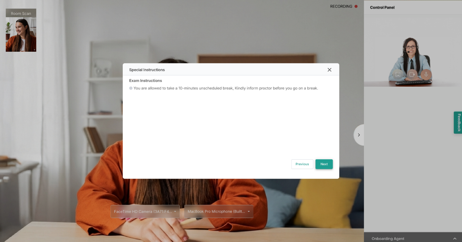 Once the face, ID, voice, palm, signature, and room scan verifications are completed, you will be transferred to a proctor.