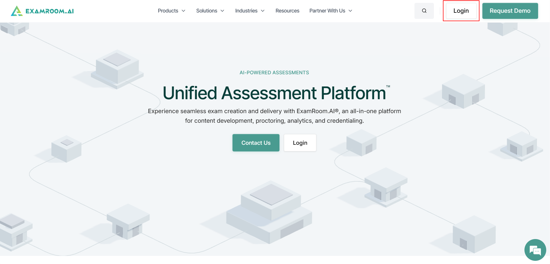 Visit app.examroom.ai to log in to the Candidate Console. You can also go to examroom.ai and click Login in the top-right corner of the page.