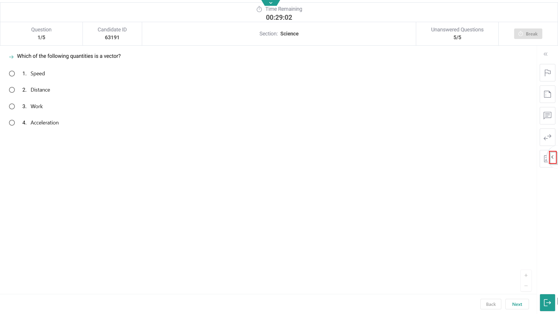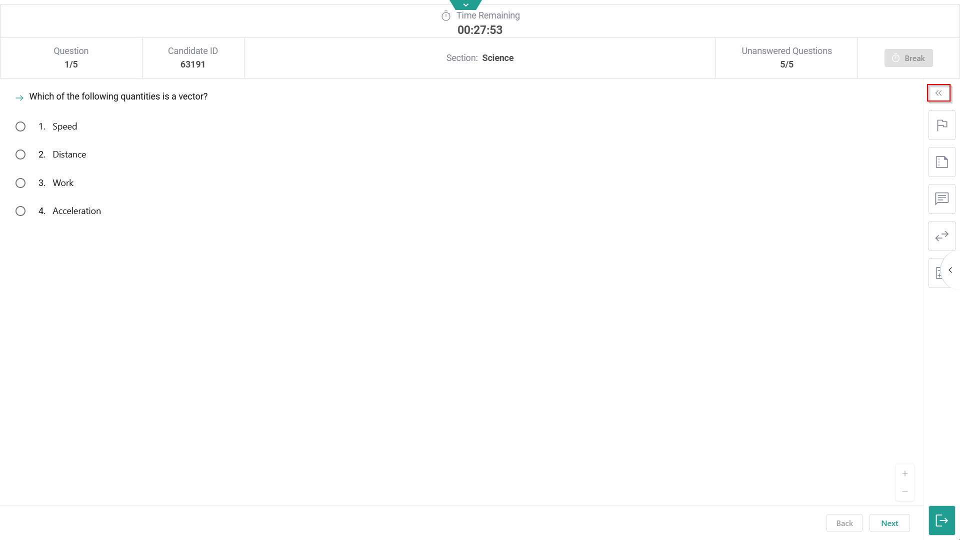 As you click the arrow to open widgets, you can see multiple widgets (may vary as per your test sponsor). The first one given here is a flag; you can use this to flag a question to revisit later.