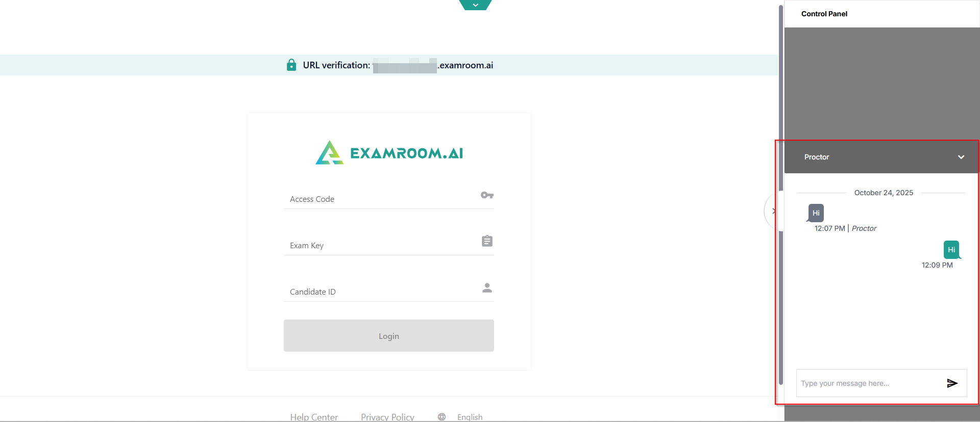 Click to open the chat box and reply or send a message to the proctor. The chat option will be active throughout your exam session.